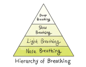 Another element here is the importance of nasal breathing. There are lots of benefits to nasal breathing but a big one is that nasal breathing is generally associated with slow, belly breathing versus mouth breathing is more associated with fast, chest breathing.